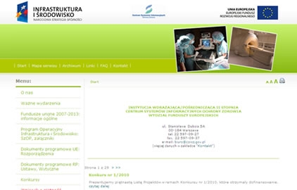 Strona przygotowana specjalnie dla wymogów Centrum Systemów informacyjnych Ochrony zdrowia przy wykorzystaniu funduszy unijnych. Bardzo nowoczesna i zaawansowana technologicznie strona.